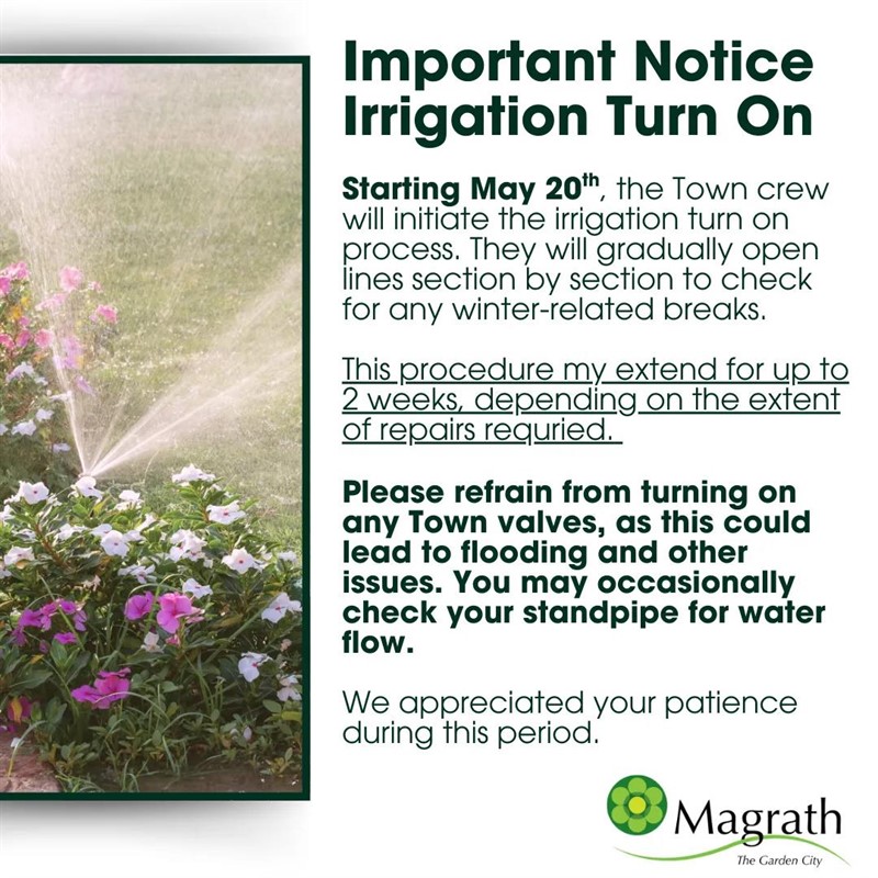 Irrigation turn on notice.