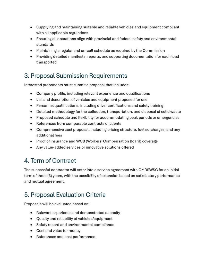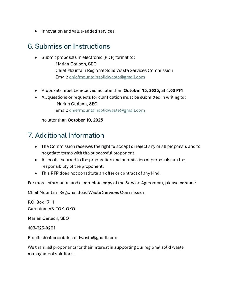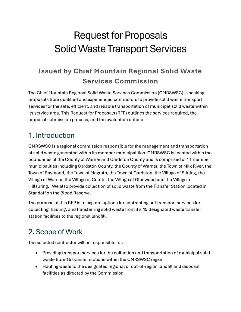 Request for Proposals: Chief Mountain Regional Solid Waste Services Commission.