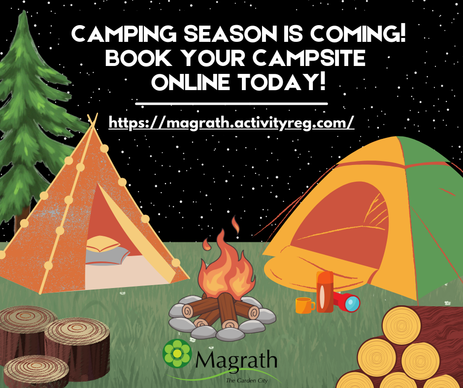 Camping season is coming! Book your campsite online today at https://magrath.activityreg.com/